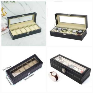 12 Slots Wrist Watch Box Watch Storage Case Organizer Black PU Leather 12 Slots in pakistan
