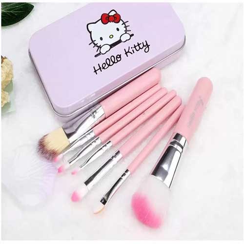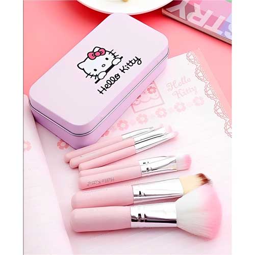 ADORABLE PACKAGING: Mini brush set hello kitty has a cut tin box with 11- inch size 7 mini brushes in pink color.