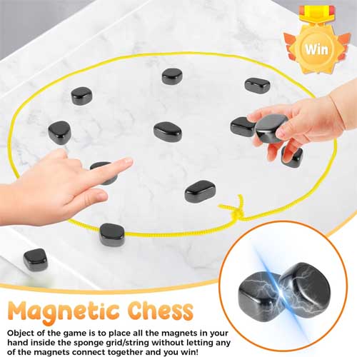 Magnetic Chess Game, Fun Table Top Magnet Game with String, Magnetic Stones Board